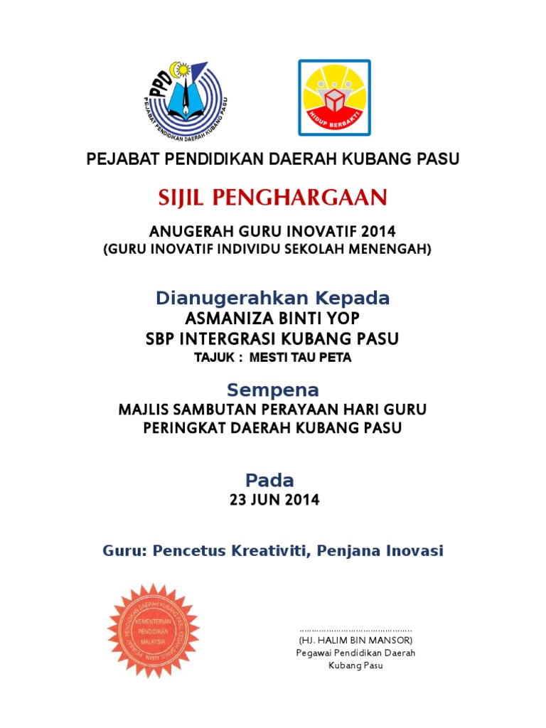 Format Sijil Penghargaan Hari Guru 2014 2 Pdf